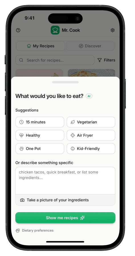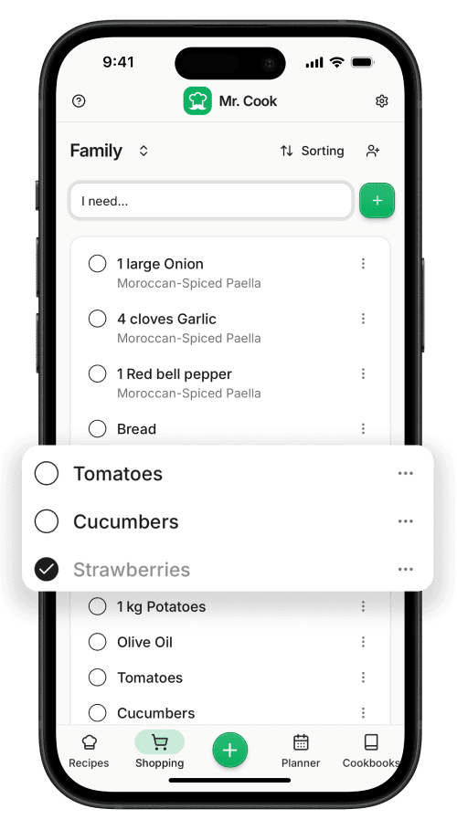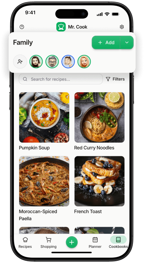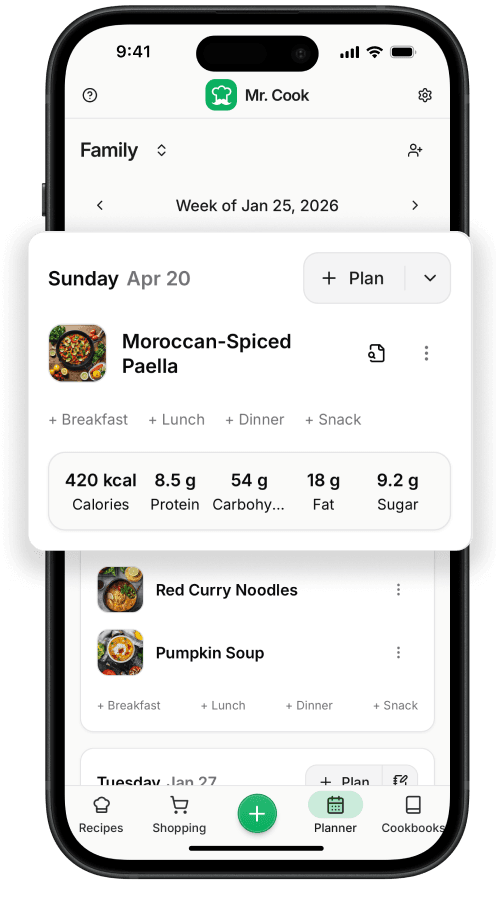 Get personalized recipe ideas, scan handwritten cards and import favorites in seconds. Mr. Cook keeps everything smartly organized to simplify your daily cooking.