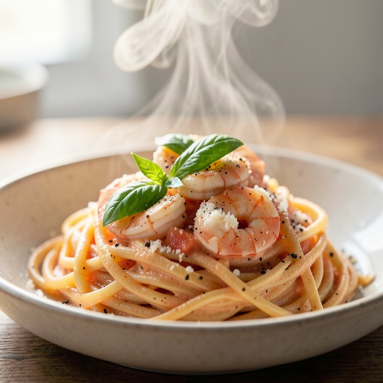 - Pasta med Cremet Tomatsauce og Rejer