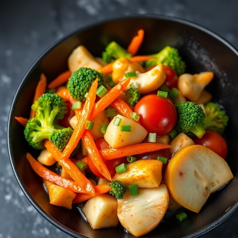 Refogado de legumes com cenoura, brócolis e tomate ao estilo asiático