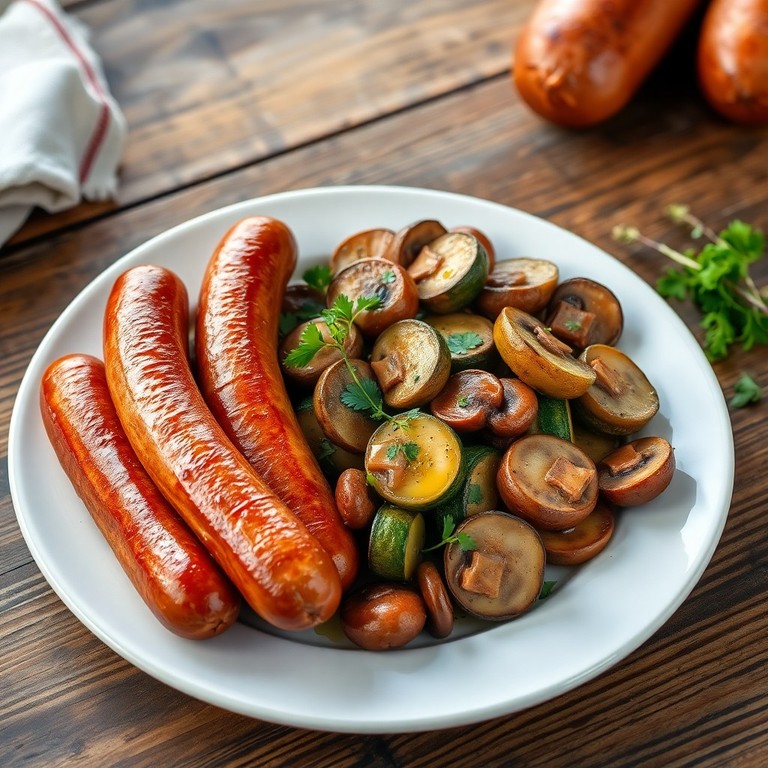Saucisses Chipolatas aux Champignons et Courgettes Sautés
