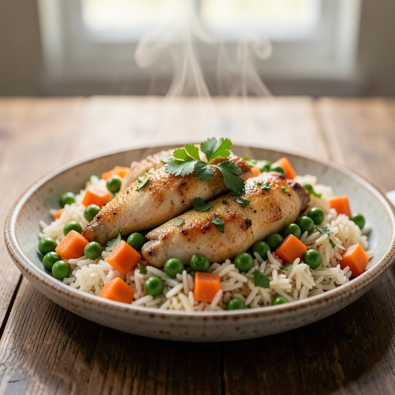 Erbsen-Möhren-Reis-Pfanne mit Hähnchen