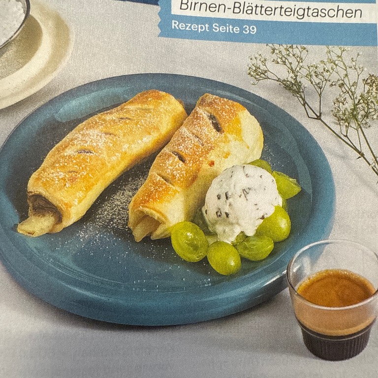 - Birnen-Blätterteigtaschen mit Trauben und Eis