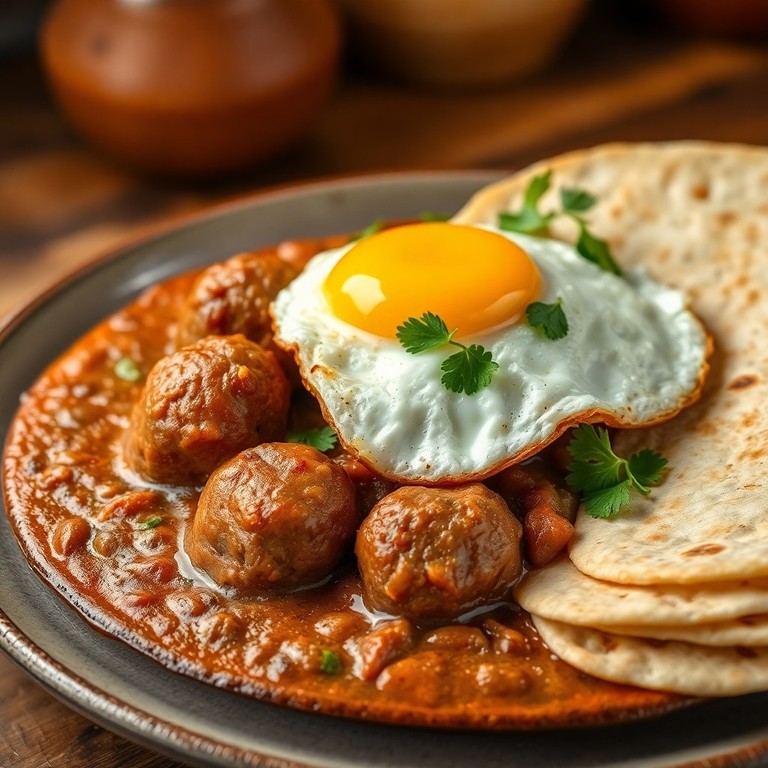 Salchicha y Frijoles en Salsa de Huevo