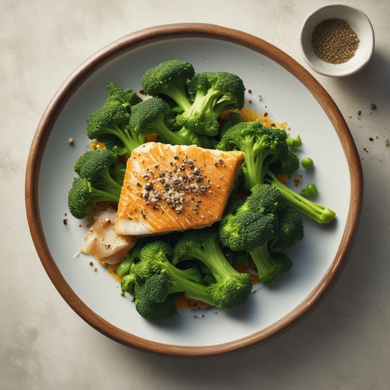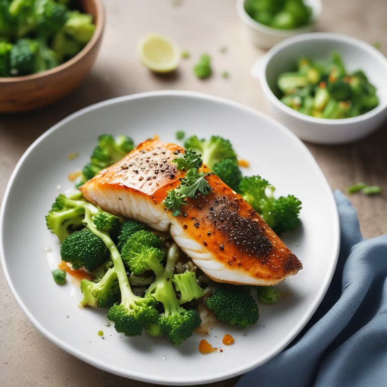 - Knusprig gebratener Fisch mit würzigem Brokkoli