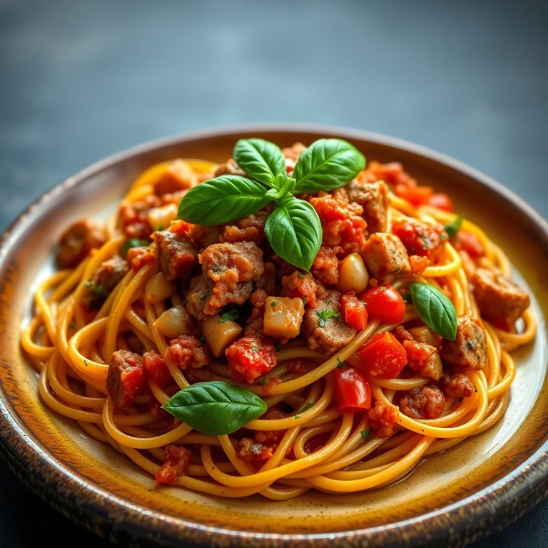 Espaguete à Primavera com Salsicha, Tomate e Cebola