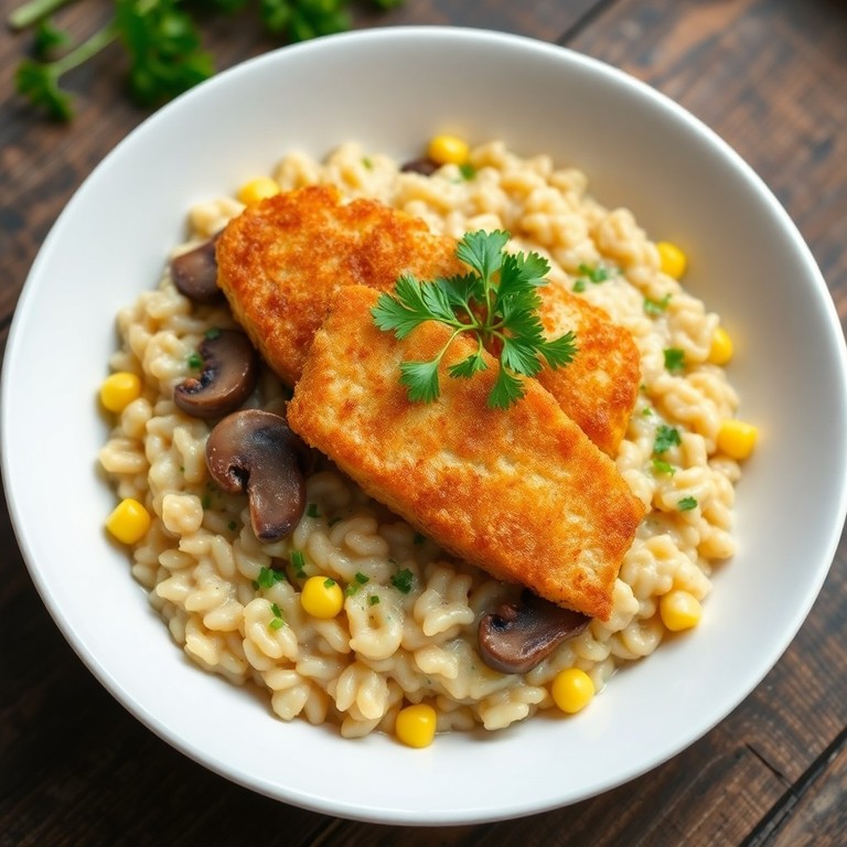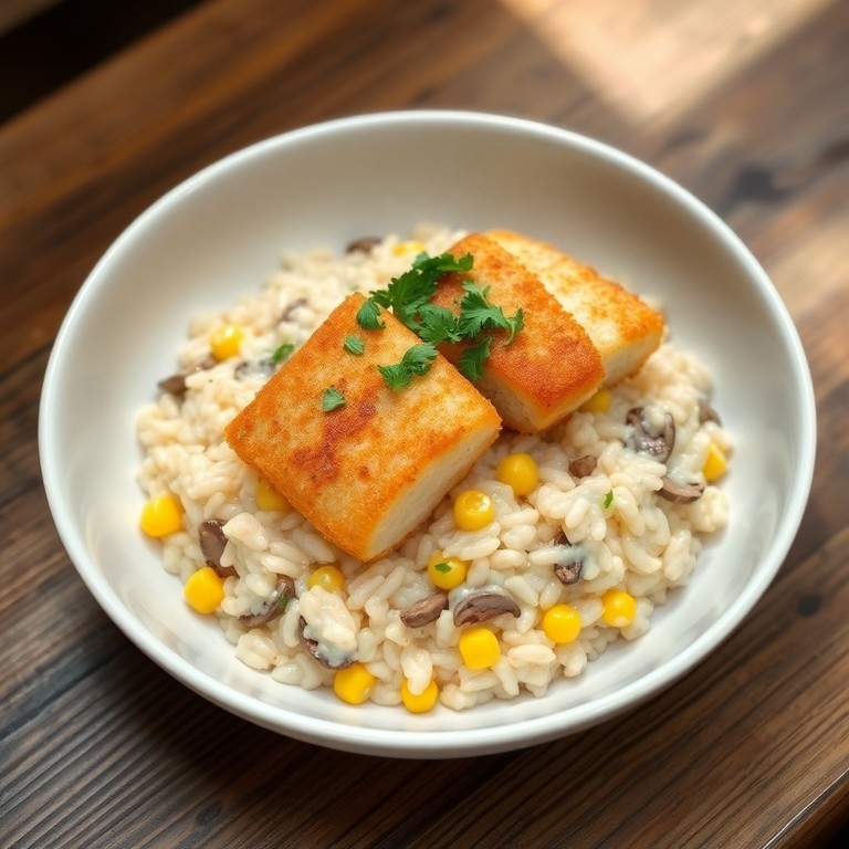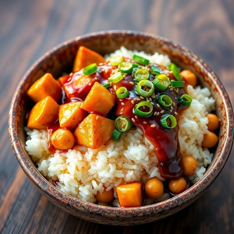 Salade chaude de riz, tofu et pois chiches à la sauce soja sucrée