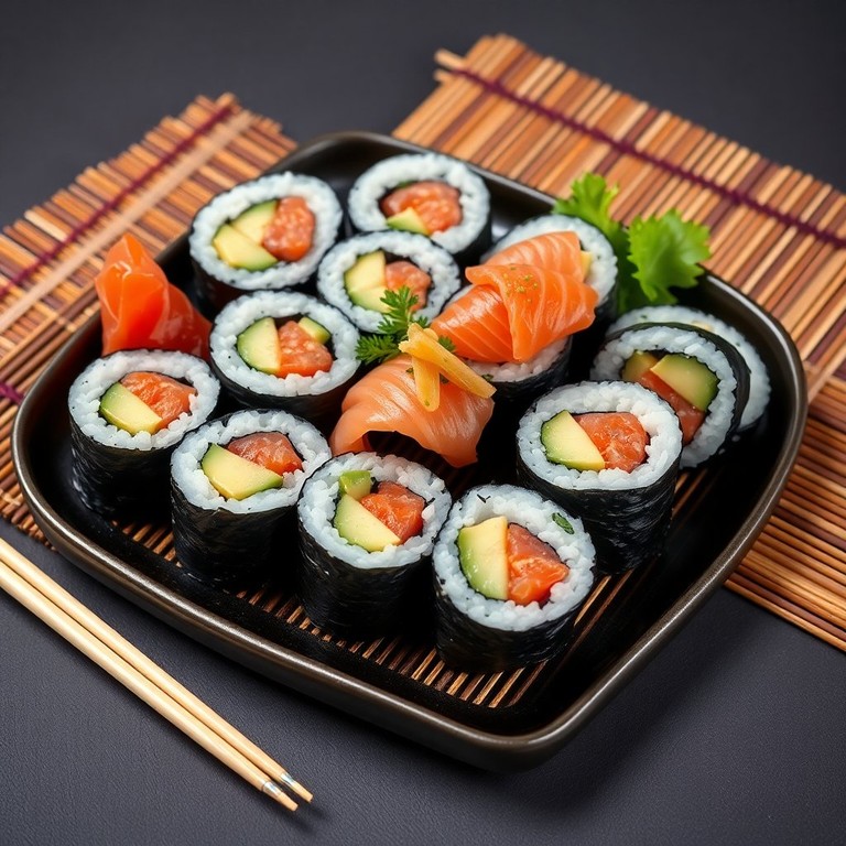 - Классические японские роллы с нежным авокадо и свежей рыбой