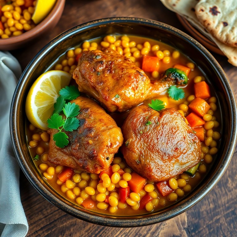 - Geschmorte Hühnchen mit Linsen und Gemüse