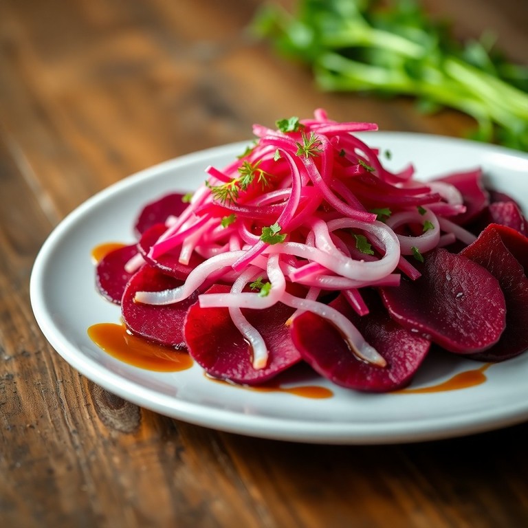 - Rote Bete Carpaccio mit würzigem Zwiebelslaw