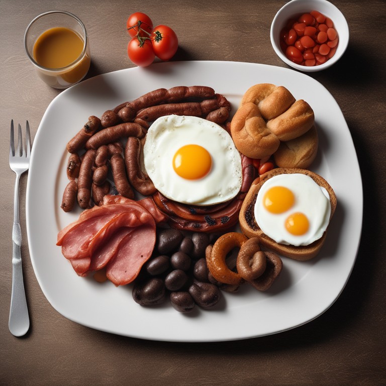 The Classic English Breakfast is a hearty and traditional morning meal that combines a variety of savory ingredients. It typically includes bacon, sausages, eggs, black pudding, toast, baked beans, tomato, and mushrooms. This breakfast is known for its rich flavors and satisfying components, making it a popular choice for a filling start to the day.