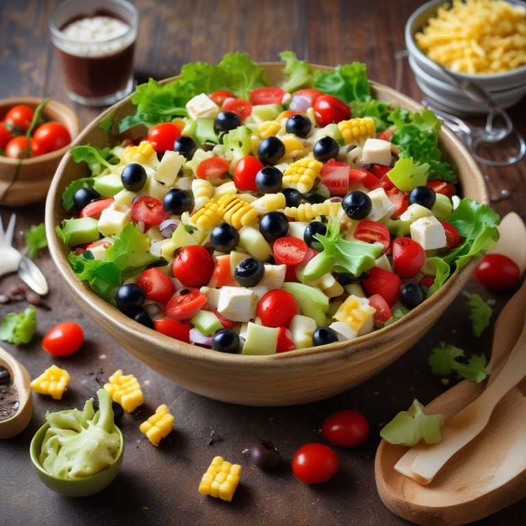Esta ensalada campestre es una opción fresca y saludable, ideal para grandes reuniones. Combina ingredientes frescos y coloridos que aportan sabor y textura, perfecta para acompañar cualquier plato principal.
