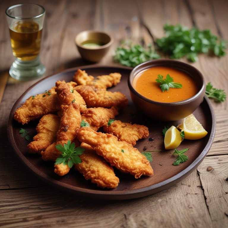 Crispy Golden Chicken Strips with a Zesty Dipping Sauce
