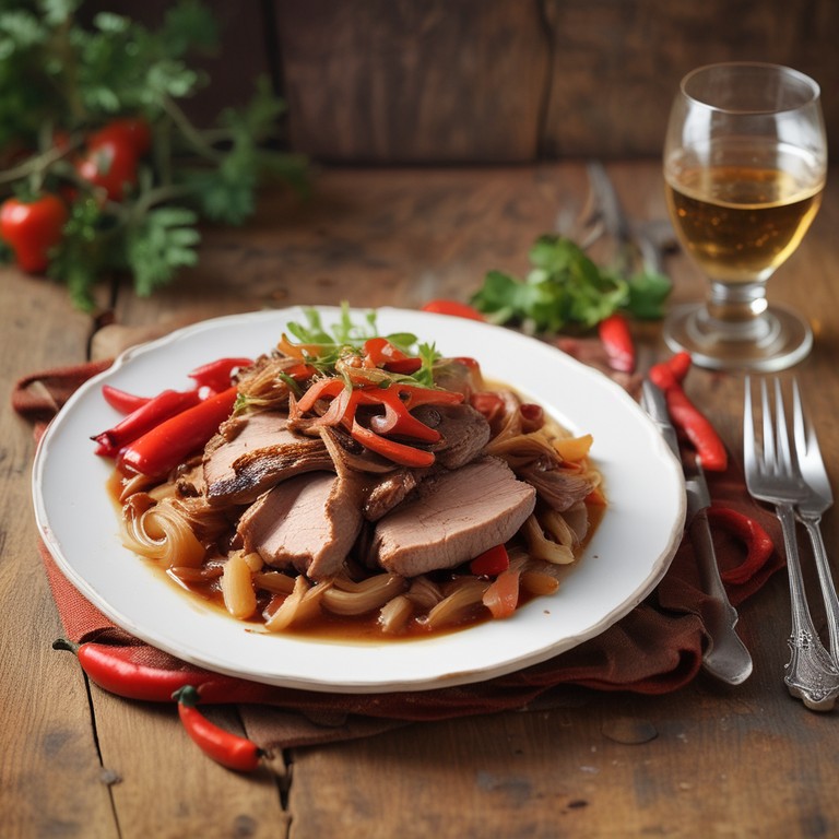 Una deliciosa receta de bondiola de cerdo cocinada a la cerveza, acompañada de pimientos rojos y cebolla, perfecta para una comida reconfortante.