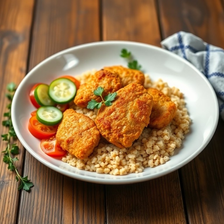 Это сытное блюдо сочетает в себе полезную гречку, нежное куриное филе и освежающий огуречный салат, что делает его идеальным для обеда или ужина.