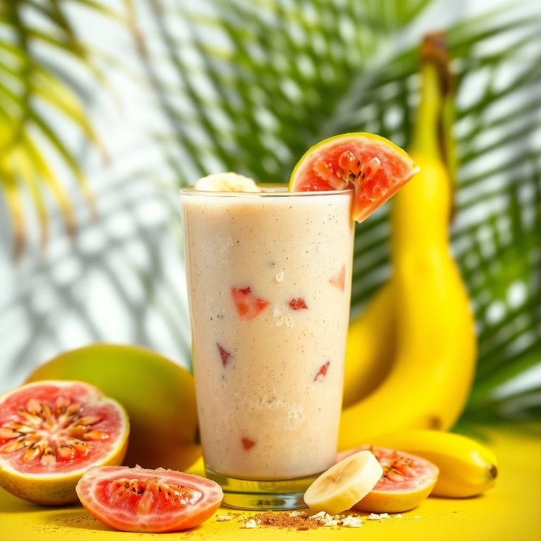 This Tropical Guava Oats Smoothie is a refreshing and nutritious way to start your day. Packed with the tropical flavors of guava and banana, combined with hearty oats, it's perfect for a quick breakfast or a revitalizing snack. The addition of coconut water adds a hydrating element, making it ideal for warm days.