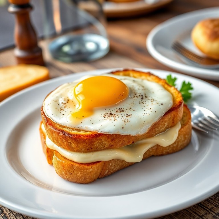 El Croque Madame Clásico es el sándwich francés tradicional que combina pan tostado, jamón cocido, queso gruyère fundido y una cremosa salsa bechamel, coronado con un huevo frito de yema líquida. Fácil y rápido de preparar en casa, este plato ofrece un equilibrio perfecto de texturas y sabores que lo convierten en un clásico irresistible.