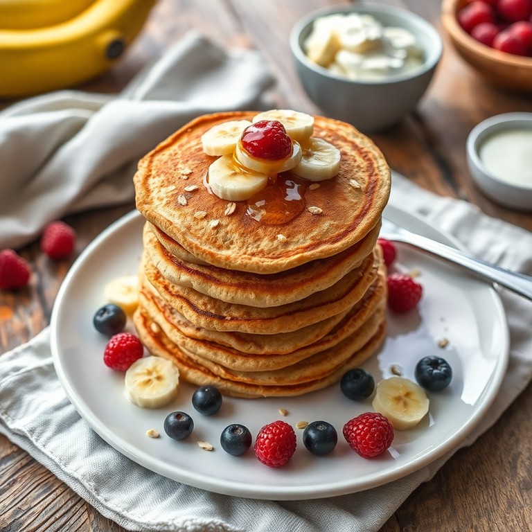 Deliciosos y nutritivos panqueques hechos con avena y plátano maduro, ideales para un desayuno saludable y fácil de preparar. Esta receta no contiene harina ni azúcar añadida, aprovechando la dulzura natural del plátano y la fibra de la avena para un desayuno equilibrado y saciante.