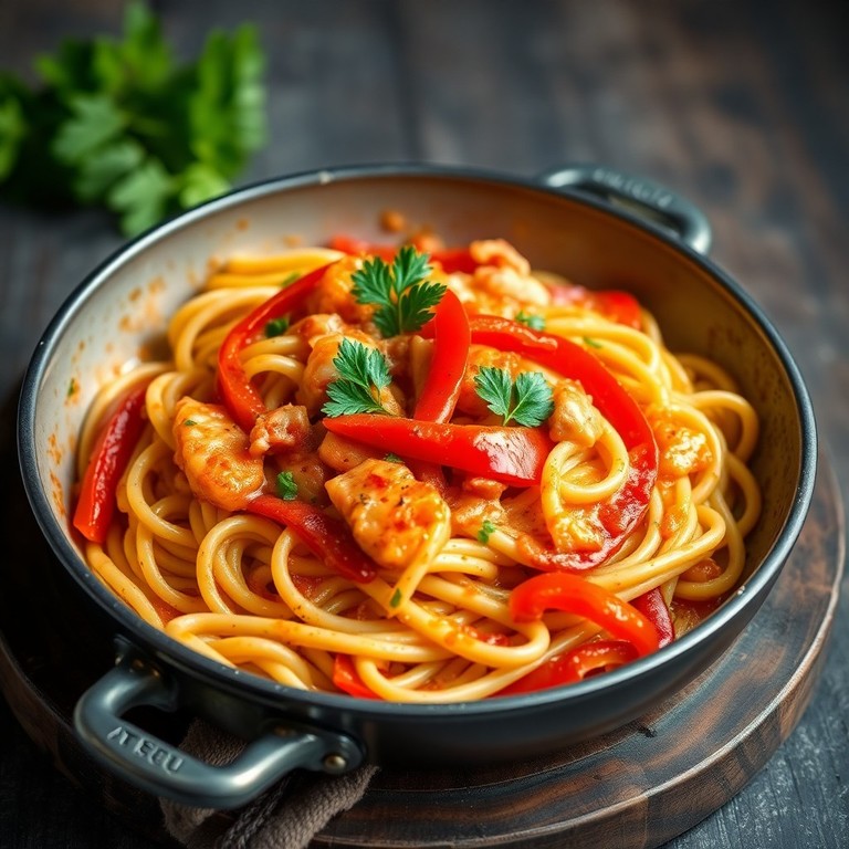 Un plat rapide et savoureux combinant la douceur des pâtes crémeuses avec des poivrons colorés sautés et une touche épicée de paprika. Une recette végétarienne gourmande, prête en seulement 20 minutes, parfaite pour un repas simple et réconfortant.