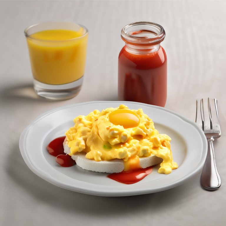 A simple and delicious recipe for scrambled eggs with a tangy ketchup twist.