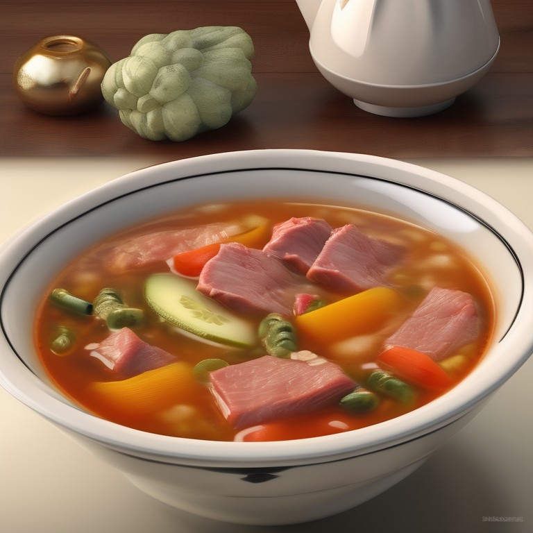 A hearty and flavorful Russian soup made with a variety of meats, vegetables, and pickles.