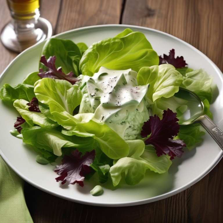 A delightful salad featuring tender leaves of lettuce coated with a rich and creamy butter made from sheep's milk.