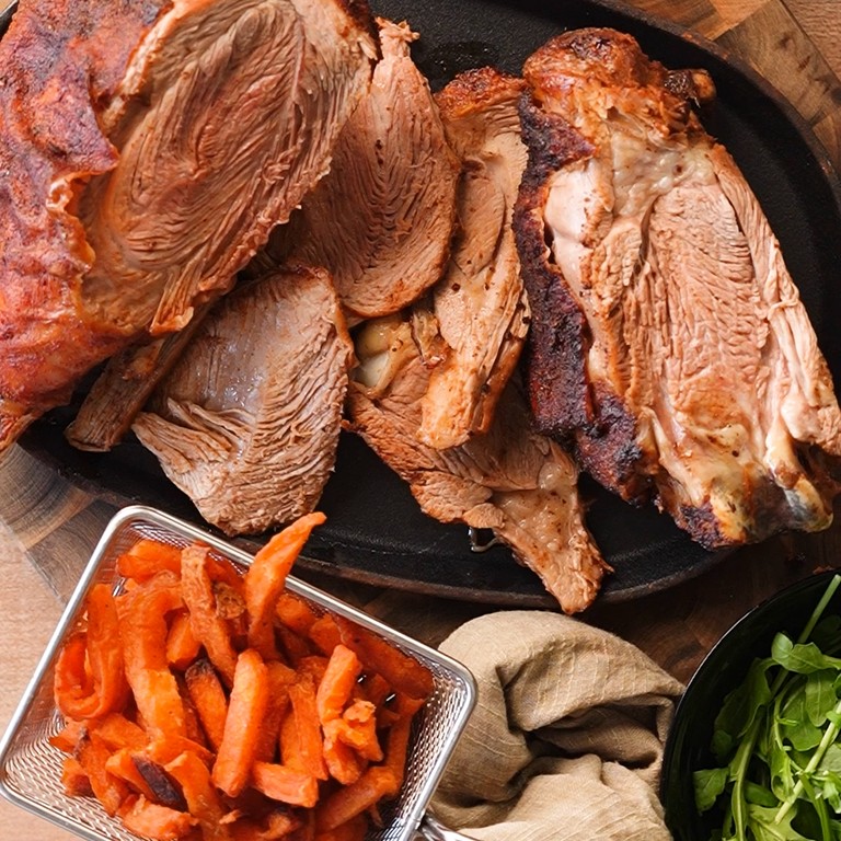 Thanksgiving-Style: Putenkeule mit Süßkartoffelpommes