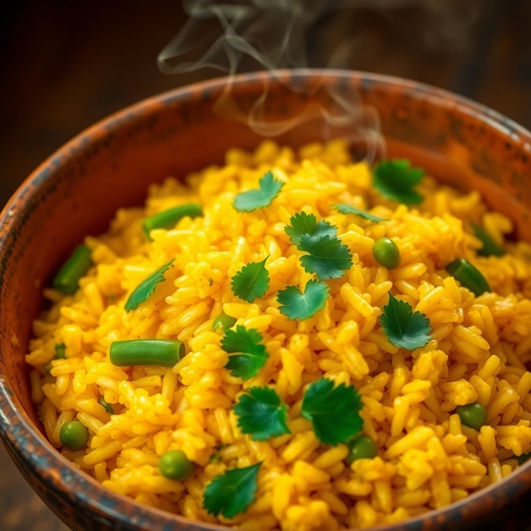 Südafrikanischer Curry-Reis mit grünen Bohnen