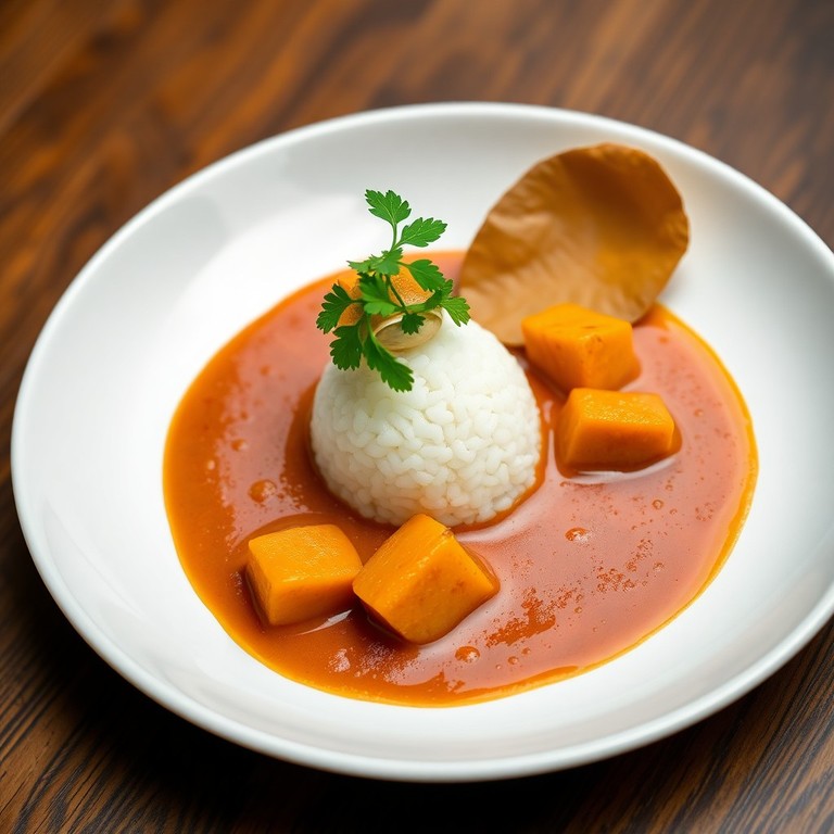 - Elegantes Massaman-Curry mit Süßkartoffel-Confit und Basmatimousse