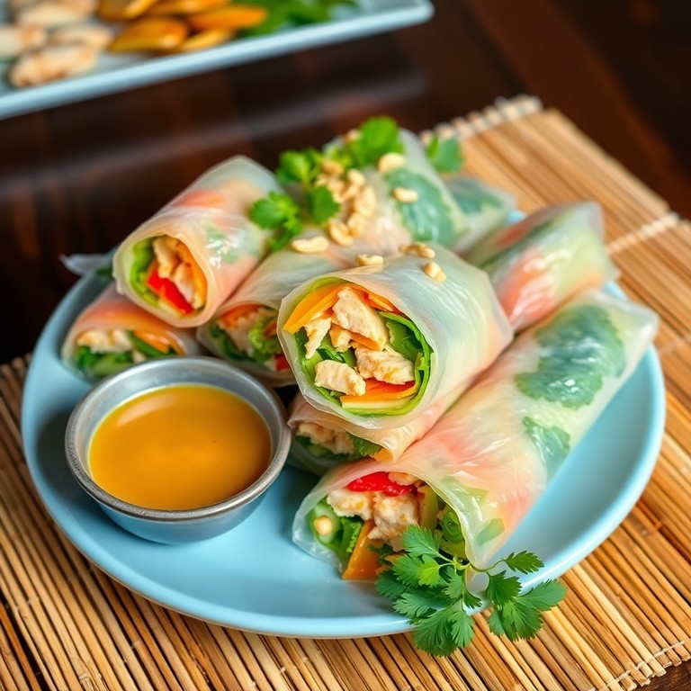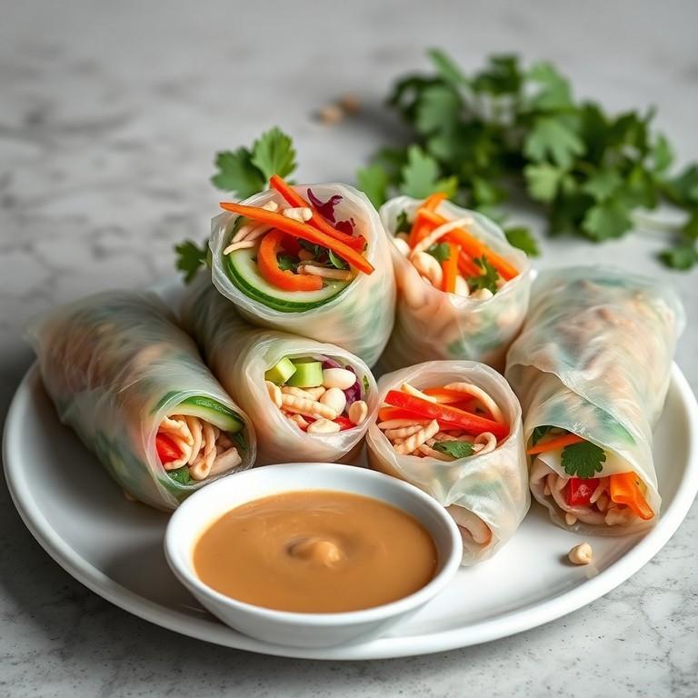 Vietnamesische Sommerrollen mit Hähnchen und Erdnusssauce