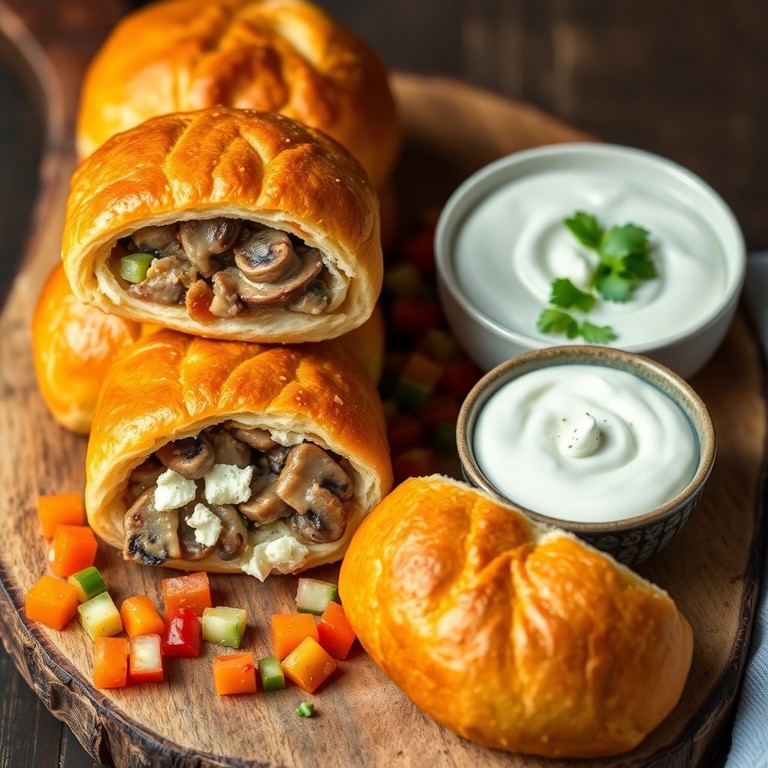 - Brötchen mit Champignon-Feta-Cremedip