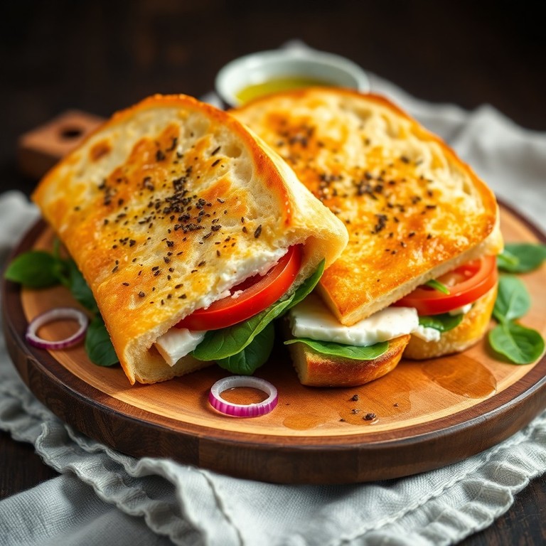 - Gebackene Feta-Sandwiches mit Tomate und Spinat