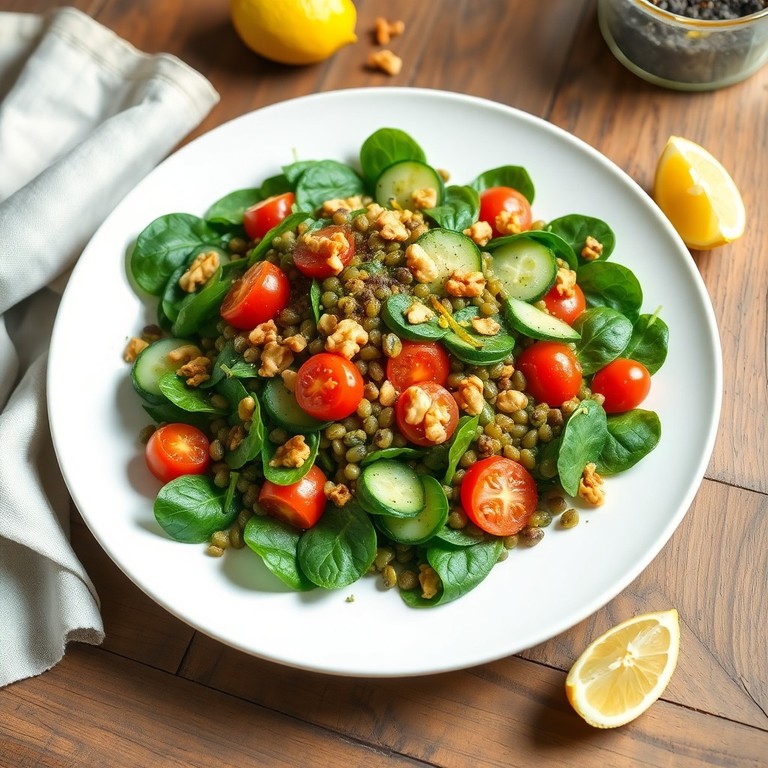 - Linsen-Spinat-Salat mit gerösteten Nüssen