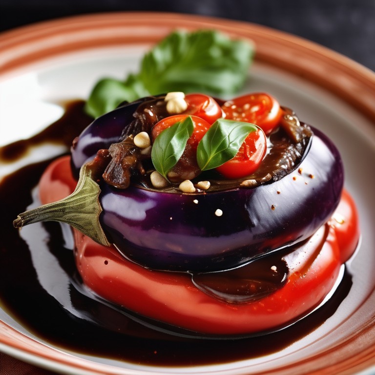 - Gebackene Auberginen mit Sojasauce und Tomaten