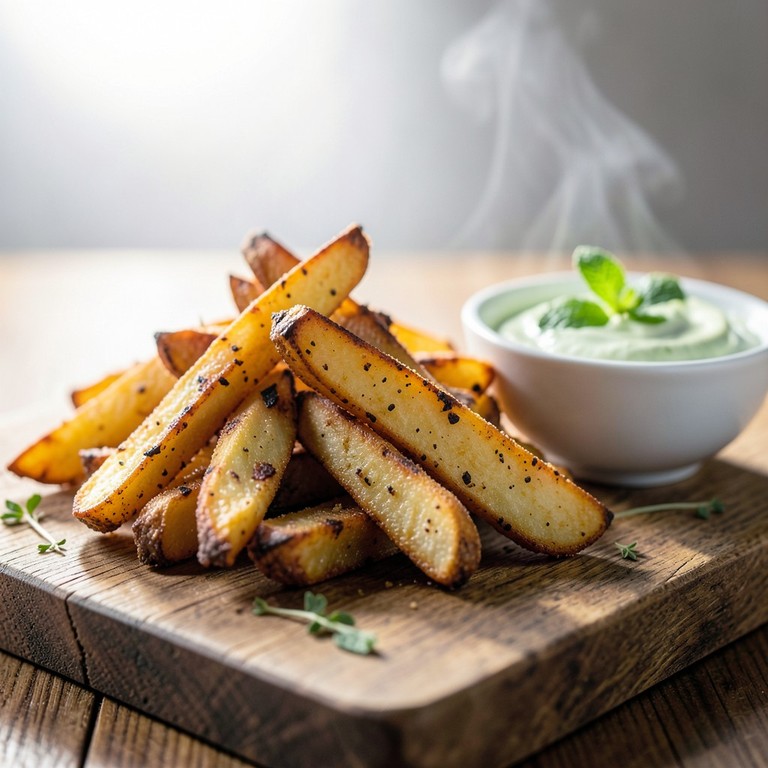 - Gebackene Kartoffelspalten mit Joghurt-Dip