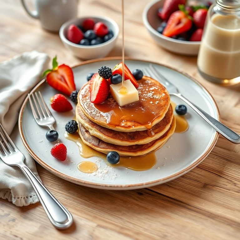 - Glutenfreie Haferpfannkuchen mit Früchten und glutenfreier Hafermilch