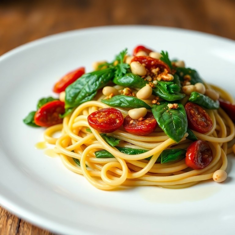 - Glutenfreie Spaghetti mit sonnengetrockneten Tomaten und Spinat