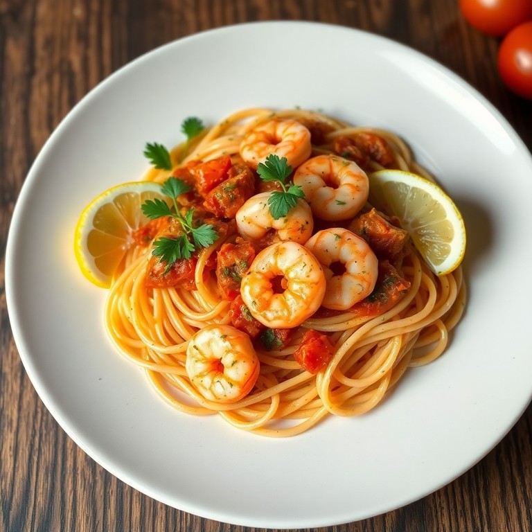 - Glutenfreie Calamarata mit Garnelen und Tomaten-Kräuter-Sauce