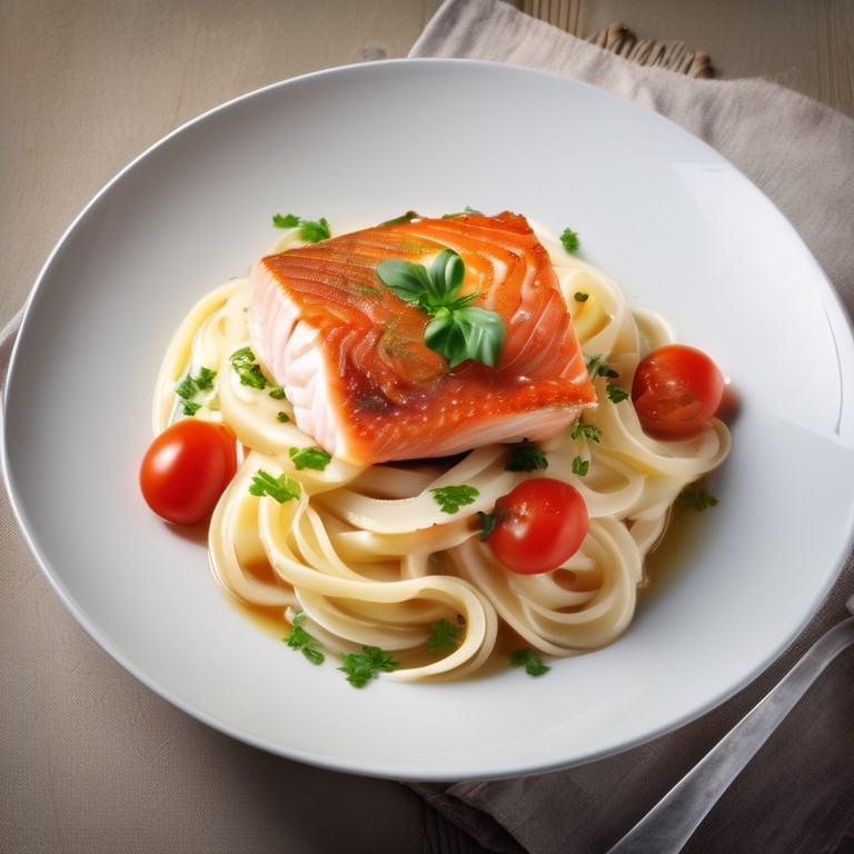 - Gebratene Backfisch-Nudeln mit Gurken und Tomaten