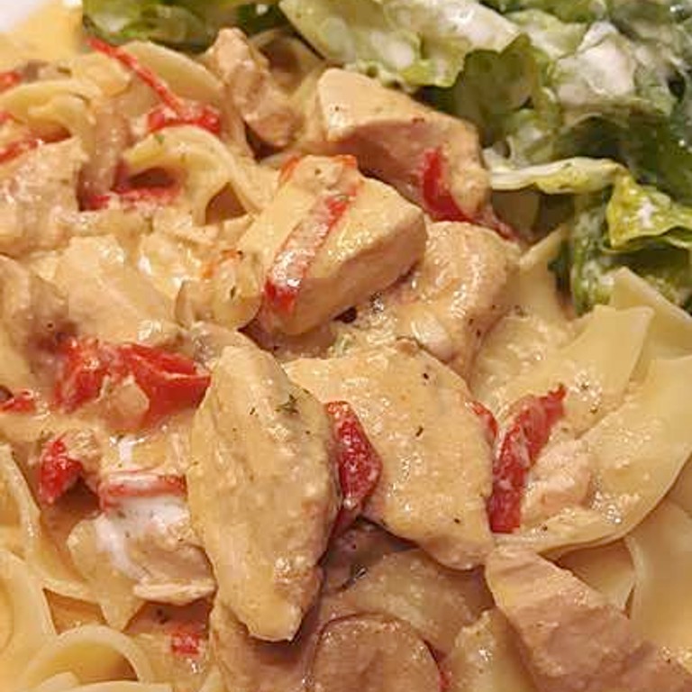 - Puten-Sahne-Gulasch auf Bandnudeln