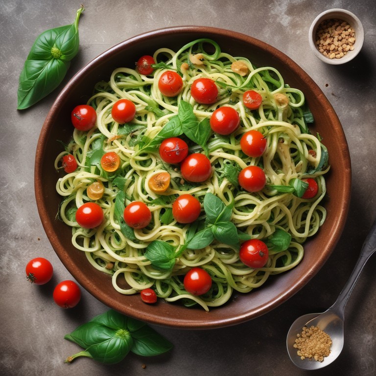 - Kohlenhydratarme Zucchini-Nudeln mit Pesto und Kirschtomaten