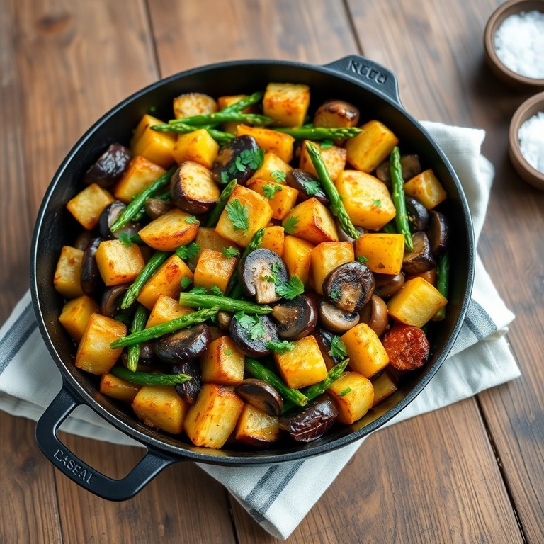 - Mediterrane Kartoffel-Auberginen-Pfanne mit Spargel und Champignons