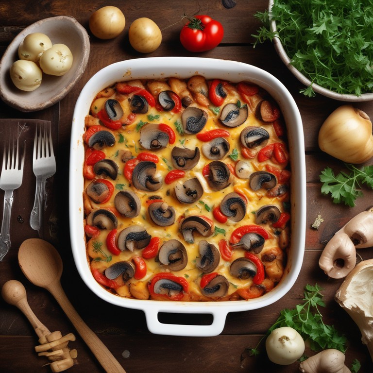 Herzhafter Kartoffel-Mushroom-Tomaten-Auflauf