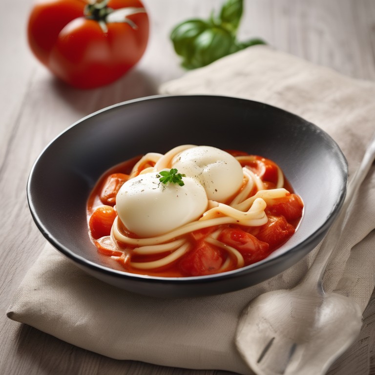 - Mozzarella-Bällchen mit Tomatensauce und Nudeln