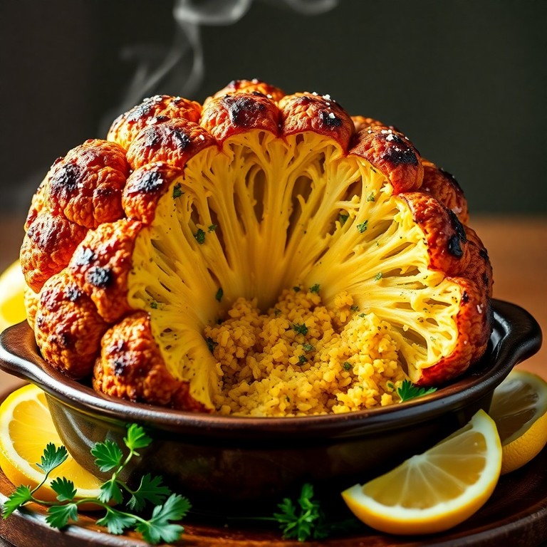 - Gefüllter Blumenkohl mit Olivenöl und Reis-Kräuter-Füllung