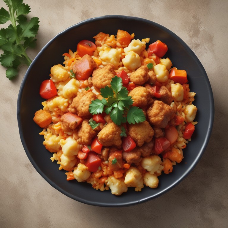 - Gebratener Blumenkohl mit Tomaten-Peperoni-Salsa und Süßkartoffel-Reis