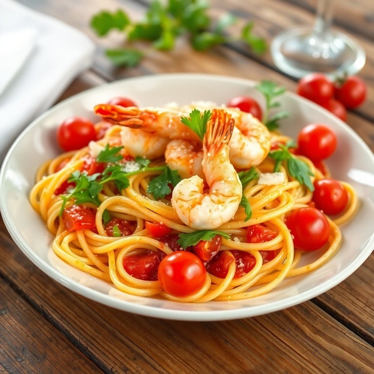 - Scampi mit Rucola-Tomatensauce über Linguine