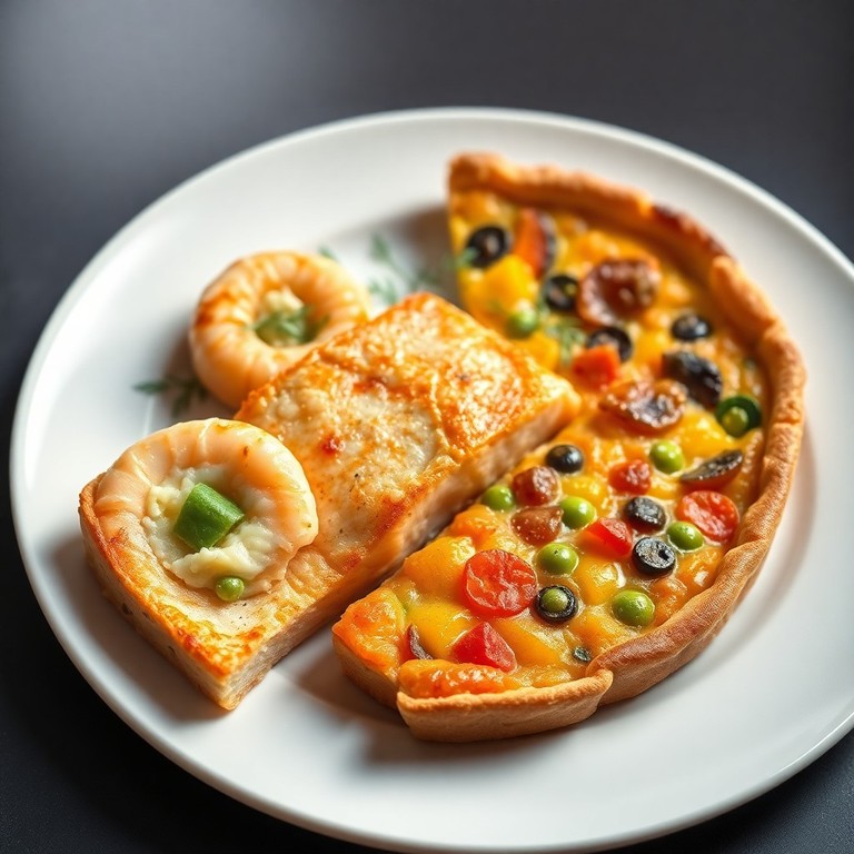 - Lachsfilet mit gefüllten Scampi und Gemüse-Quiche