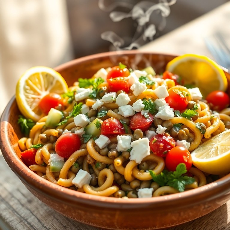 - Mediterraner Pasta-Linsensalat mit Zitronen-Vinaigrette