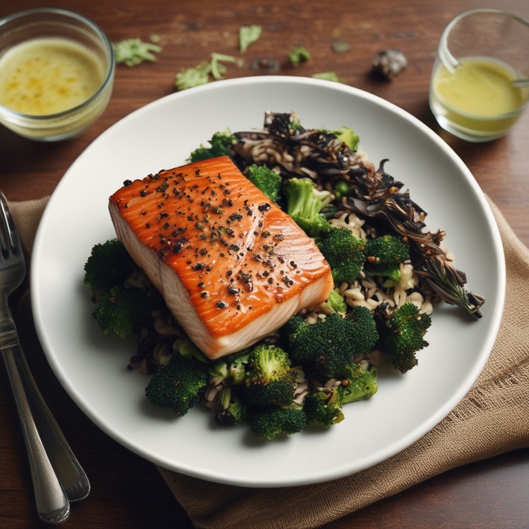 - Gebratener Lachs mit Brokkoli und Wildreis
