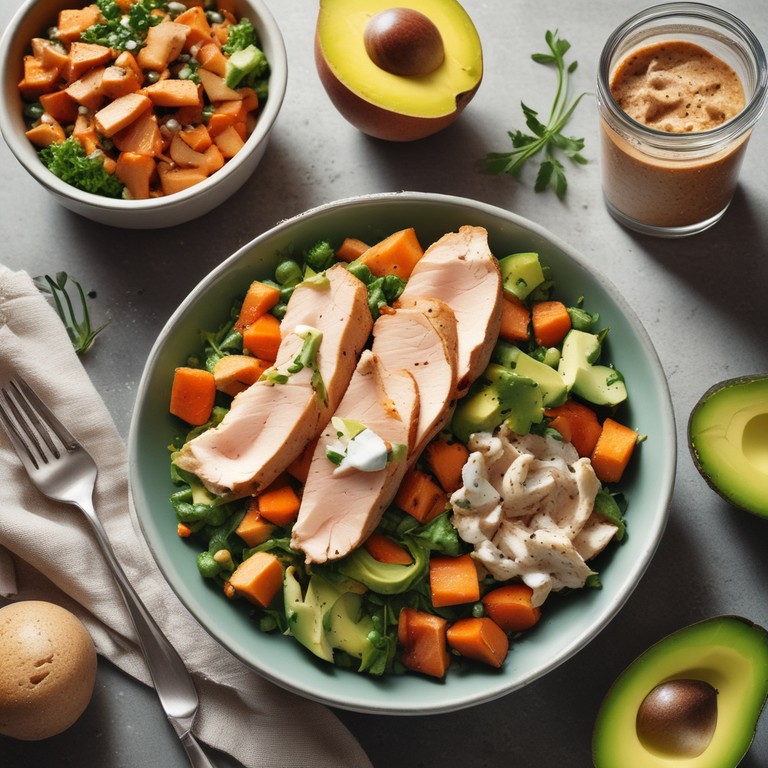 - Süßkartoffel-Salat mit Hähnchenbrust und Avocado